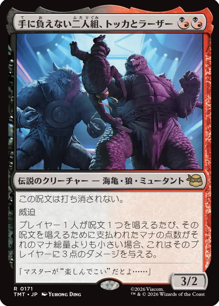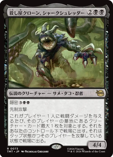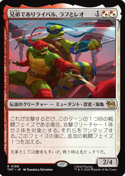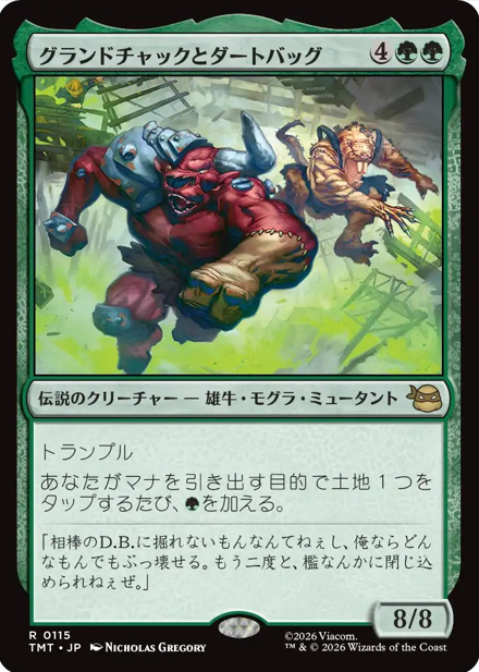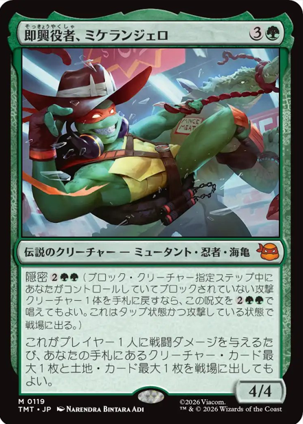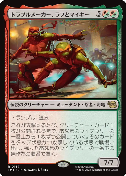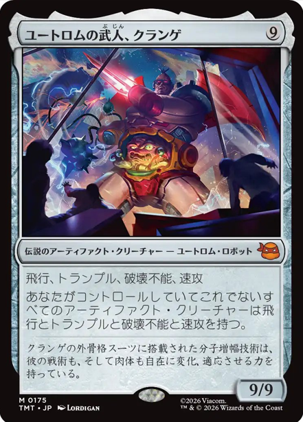 HOME > MTG > MTG MTGカード情報 雑記 【統率者/EDH】『マジック:ザ・ギャザリング | ミュータント タートルズ』収録の伝説のクリーチャーまとめ【MTG】 2026年1月22日 皆さん、こんにちは。 本記事は『マジック:ザ・ギャザリング | ミュータント タートルズ』に収録される「伝説のクリーチャー」をまとめていきます。 それではいきましょう。 ↓各セットの伝説のクリーチャー↓ 【統率者/EDH】各セットの『伝説のクリーチャー』まとめ【MTG】 ページ内リンク 白 青 黒 赤 緑 多色 無色 統率者 白 青 黒 赤 緑 多色 無色 統率者 おすすめ記事 【統率者/EDH】各セットの『伝説のクリーチャー』まとめ【MTG】 【統率者/EDH】『マジック:ザ・ギャザリング | アバター 伝説の少年アン』収録の伝説のクリーチャーまとめ【MTG】 【統率者/EDH】『Assassin's Creed』収録の伝説のクリーチャーまとめ【MTG】 【統率者/EDH】『ローウィンの昏明』収録の伝説のクリーチャーまとめ【MTG】 検索 Twitter Share Pocket Hatena LINE コピーする この記事を書いた人 最新記事 Taisa 職業:自営業 ブログ内容:主にMTGメインで集めており、統率者を主戦場として活動しております。 他TCG(遊戯王、ポケカ)も多少なりとも集めています。あとは玩具の紹介などです。基本的には雑記ブログですが、訪問していただいた方々が満足できるような情報も発信していけるよう努力する所存です。 2026/01/20【統率者/EDH】『ローウィンの昏明』収録の伝説のクリーチャーまとめ【MTG】 2026/01/07【統率者/EDH】ゼロから始める統率者生活【MTG】 2026/01/07【統率者/EDH】オススメ『土地サーチ呪文/ランパン』呪文まとめ※随時更新【MTG】 Taisaの記事をもっと見る -MTG, MTGカード情報, 雑記 -EDH, MTG, カジュアルEDH, カジュアル統率者, マジック:ザ・ギャザリング | ミュータント タートルズ, 統率者